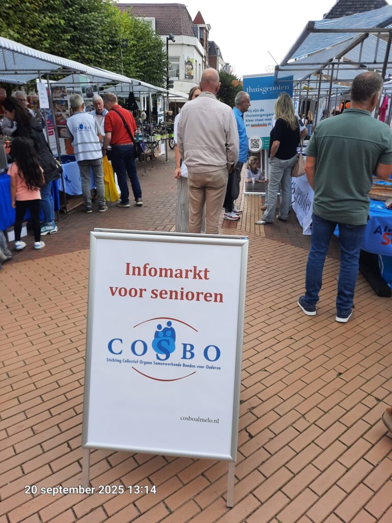 De Infomarkt voor senioren op 20 september had een prima verloop. Mooi weer (met een paar kleine buitjes) bracht vele bezoekers naar de standhouders op de Koornmarkt. Diverse bedrijven en organisaties boden hun producten en diensten aan, wat gewaardeerd werd door de bezoekers. Wethouder van Mierlo opende de markt met een aanbeveling aan de bezoekers om alle kramen te bekijken.